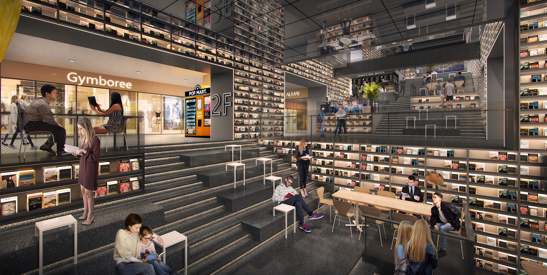 全国第一个在室内构建一座百米“书山”的文化教育综合商业体